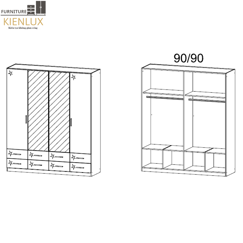 | Chất liệu | Gỗ MDF lõi xanh chống ẩm, cánh acrylic bóng gương |