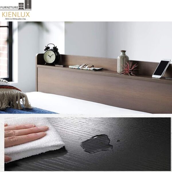 – Chất liệu Gỗ MDF HMR Lõi Xanh chống ẩm đạt tiểu chuẩn E1 cao cấp nhập khẩu Thái Lan được phủ Melamine chống thấm, an toàn cho sức khỏe